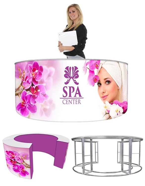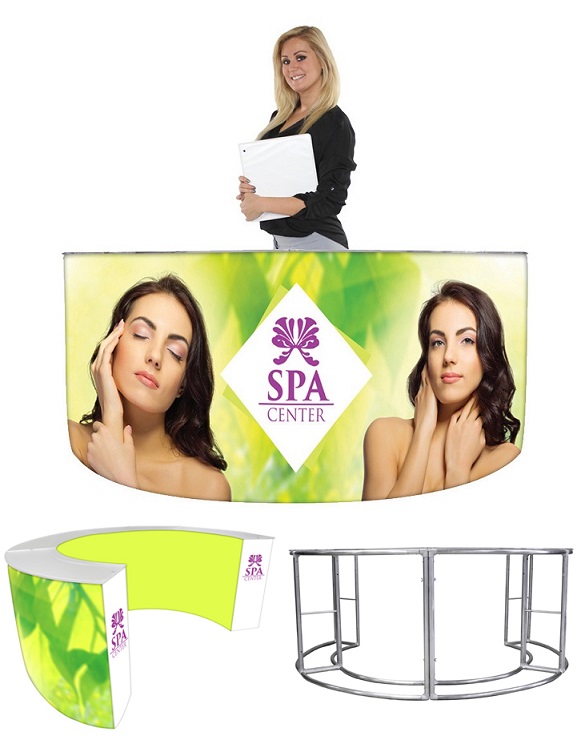 Introducing the new eZ Fabric Counter display, developed to combine convenience and show. Leave your tools at home because this unit is completely toolless. Push button snaps connect the lightweight aluminum framework together. Slip the fabric over the frame, hook and loop the fabric piece underneath and zip shut the backside. attach counter top. Graphics available on front, back, sides and top. See your printed graphic through the frosted acrylic counter top piece! this fully enclosed unit unzips to make for a convenient spot to hide stuff. Carry Nylon Bag included.