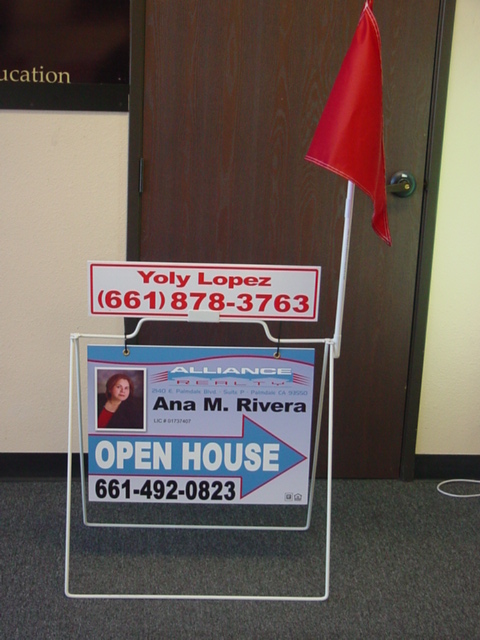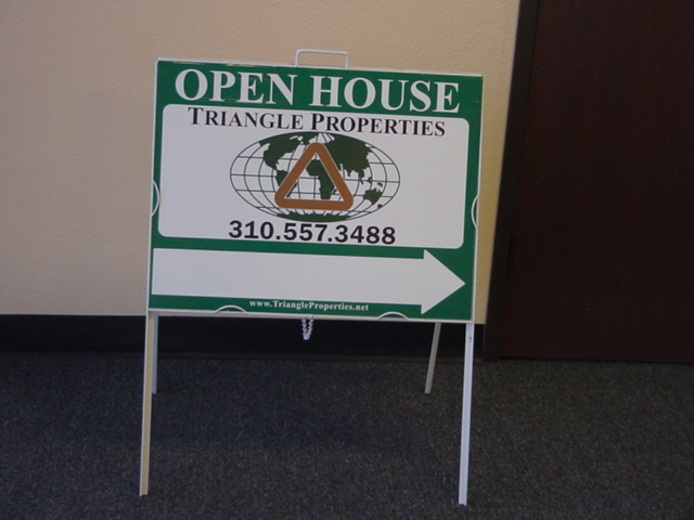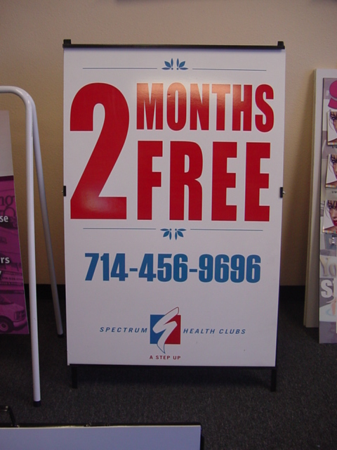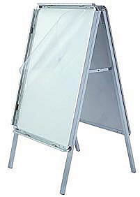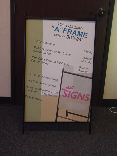 This A-frame is our top seller! Not only is it durable (steel) but it's inexpensive, movable, easy to store after use, plus comes with full color digital print onto 1/8" PVC (double sided).