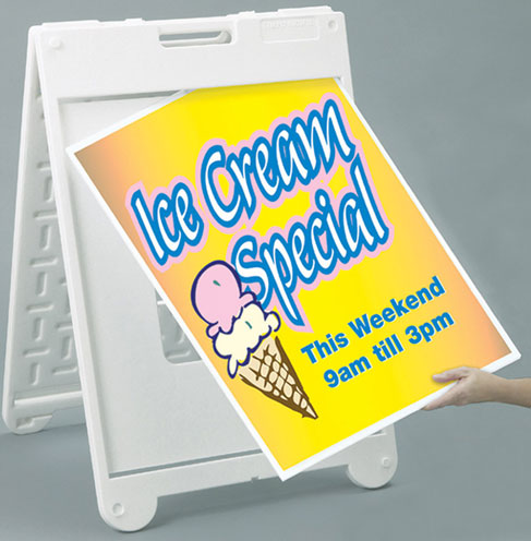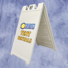 This heavy-duty plastic A-frame is the perfect solution for sidewalk advertising.