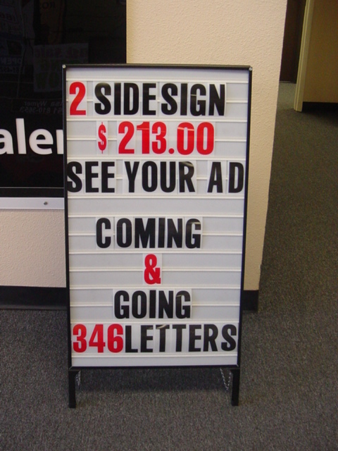 Changeable A-frame that includes 2 sets of 4" black letters (346 letters, numbers, and characters)