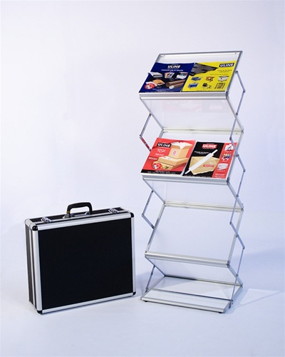 This stylish 5-Step Literature Rack holds literature even while folded, making portability even easier. Pockets holds 8 1/2" x 11" literature; 1 1/2" deep.